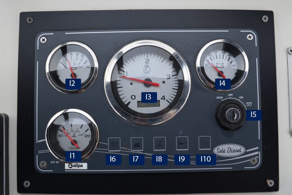 - Controleer de stroomvoorziening aan boord in de zekeringkast (in de salon). Controleer de controlelampjes voor 230 Volt via omvormer en voor 230 Volt via walstroom. Controleer ook of er een zekering uit staat in de zekeringkast. Geen controlelampje? Controleer of de stroom werkt op de stopcontacten en of de koelkast het nog doet. Indien hier ook geen stroom is, dan is de accuspanning vermoedelijk te laag en dient u eerst de boot aan landstroom aan te sluiten zodat de accu’s kunnen opladen.