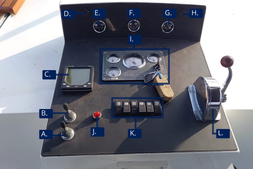 Deze boot heeft een elektrische boeg- en hekschroef. Dit betekent dat zowel de boeg- als de hekschroef is aangesloten op een afzonderlijke accu. De boeg- en hekschroef werkt uitsluitend bij een lopende motor. De boeg- en hekschroef hoeven niet apart aangezet te worden en staan hierdoor altijd stand-by. Gebruik de boeg- of hekschroef uitsluitend bij het manoeuvreren.